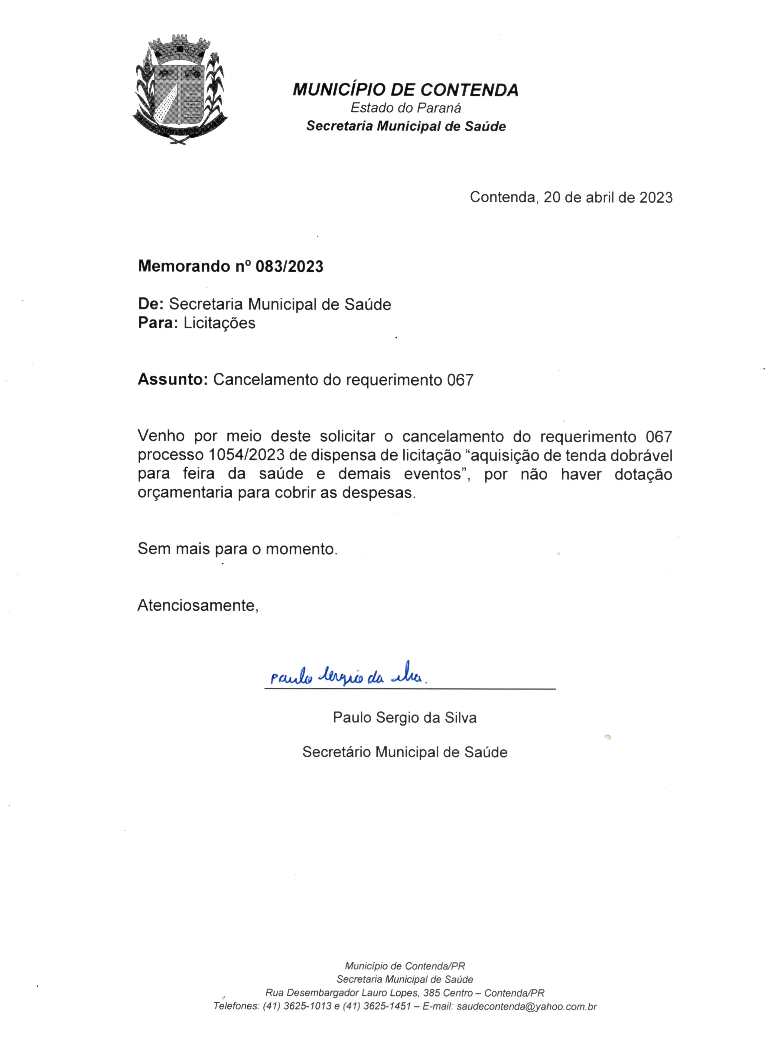 - Geral: CANCELAMENTO DO PROCESSO Publicado em: 20/04/2023 09:50